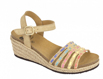 dr. Scholl LODOLETTA Descrizione Sandalo su zeppa in corda, colorato e perfettamente versatile. La parte frontale della tomaia è infatti caratterizzata da una una serie di morbidissime fascette multicolor dai toni pastello. Il cinturino é in pelle scamosciata con chiusura a fibbia. Il comfort è assicurato anche dal plantare con tecnologia Scholl Bioprint che grazie al suo design ergonomico permette di camminare con naturalezza e con maggiore relax. Il plantare Bioprint è composto da una speciale combinazione di sughero e gomma ed è ergonomicamente disegnato intorno alla naturale anatomia del piede per assicurare stabilità e supporto. La sua anatomia mantiene il piede nella corretta posizione offrendo una base ottimale per i piedi e rendendo più leggero ogni passo. Il supporto confortevole dell'arco plantare e l'avvolgente sede per il tallone permettono di camminare con naturalezza e maggiore relax. Formato Altezza tacco: 60 mm Taglia: dal n. 35 al n.42 Colore: sabbia Fitting: f Genere: donna Materiale fodera: microfibra Materiale soletto: microfibra Materiale suola: EVA Tomaia: pelle scamosciata + fascia colorata Cod. F270532157